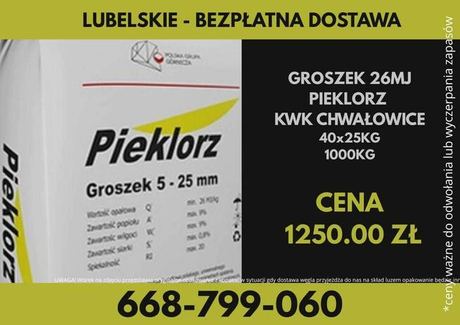Polski Węgiel KWK CHWAŁOWICE : - WĘGIEL GROSZEK PIEKLORZ 26 MJ (5-25) Paleta ( worek ) 40x25 kg Cena : 1250 zł ( ...